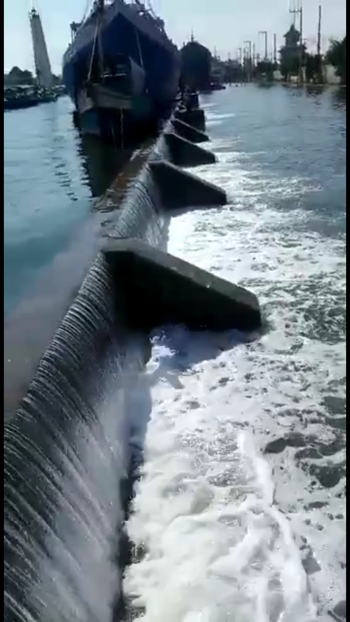 Akibat dari air pasang (Rob), untuk kegiatan bongkar muat barang dan arus lalu lintas di sepanjang jalan angkutan barang untuk sementara dihentikan.