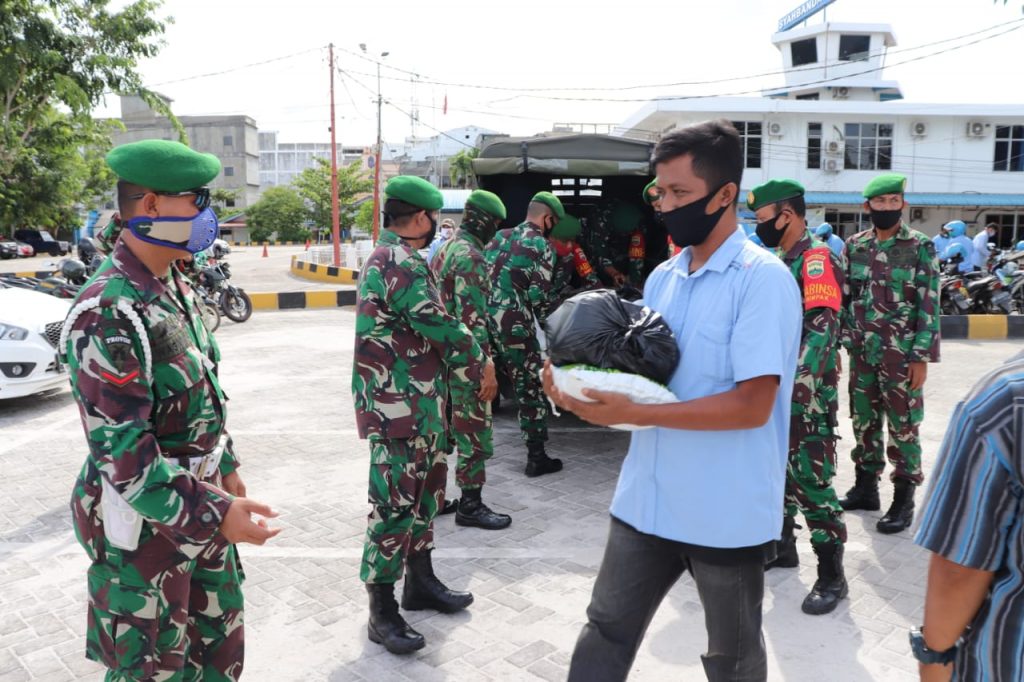 Tanjungpinang – Beritainvestigasi.com. Komando Rayon Militer (Koramil) 01/Tanjungpinang Kodim 0315/Bintan menyerahkan bantuan berupa 100 Paket Sembako kepada Tukang Becak dan Ojek di Pelabuhan Sri Bintan Pura (SBP) Tanjungpinang, Kamis (23/4/2020) pagi.