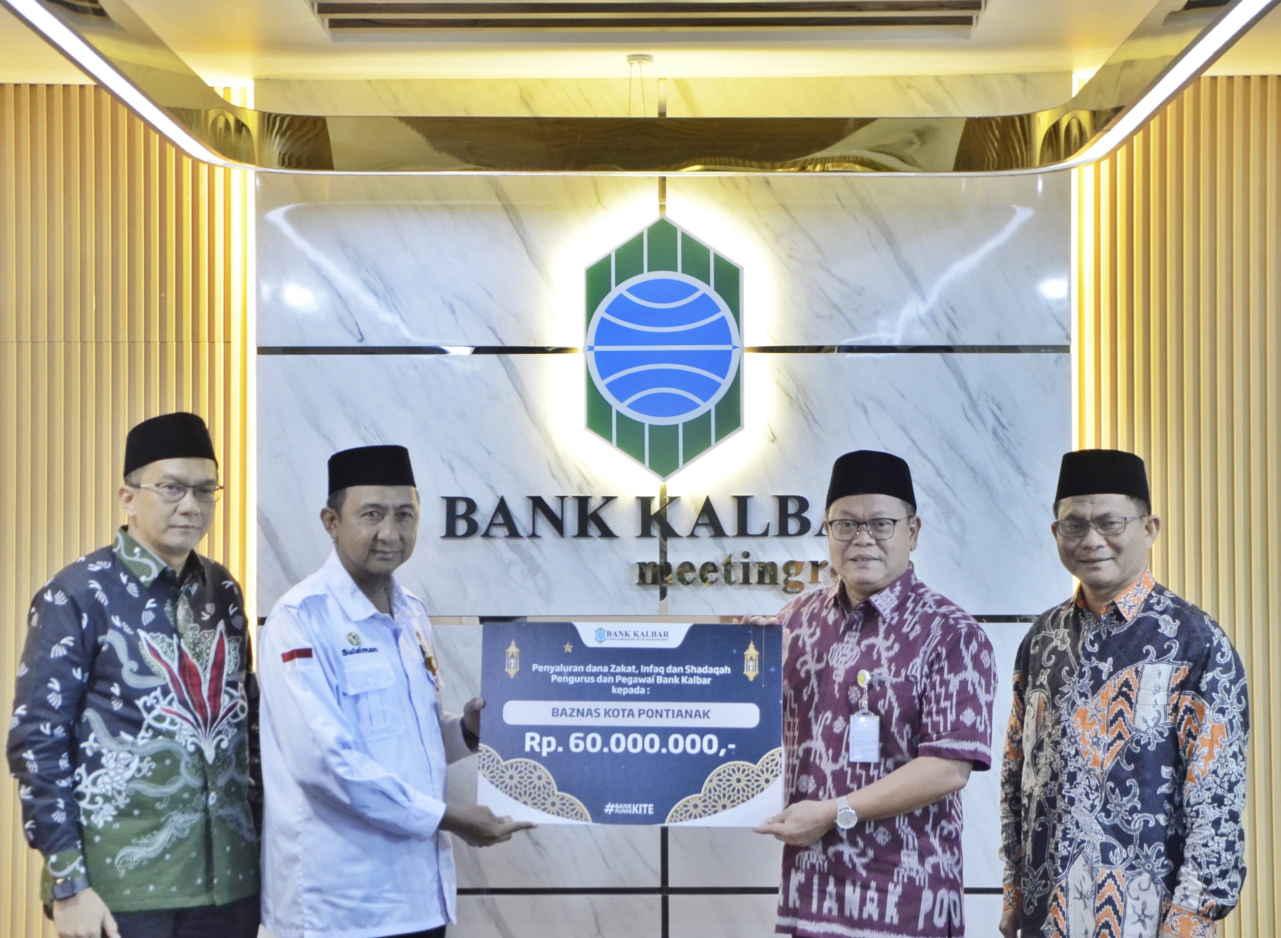 Penyerahan bantuan Zakat Infaq dan Sedekah sebesar 300 juta dari Bank Kalbar kepada Lembaga Amil Zakat di Pontianak