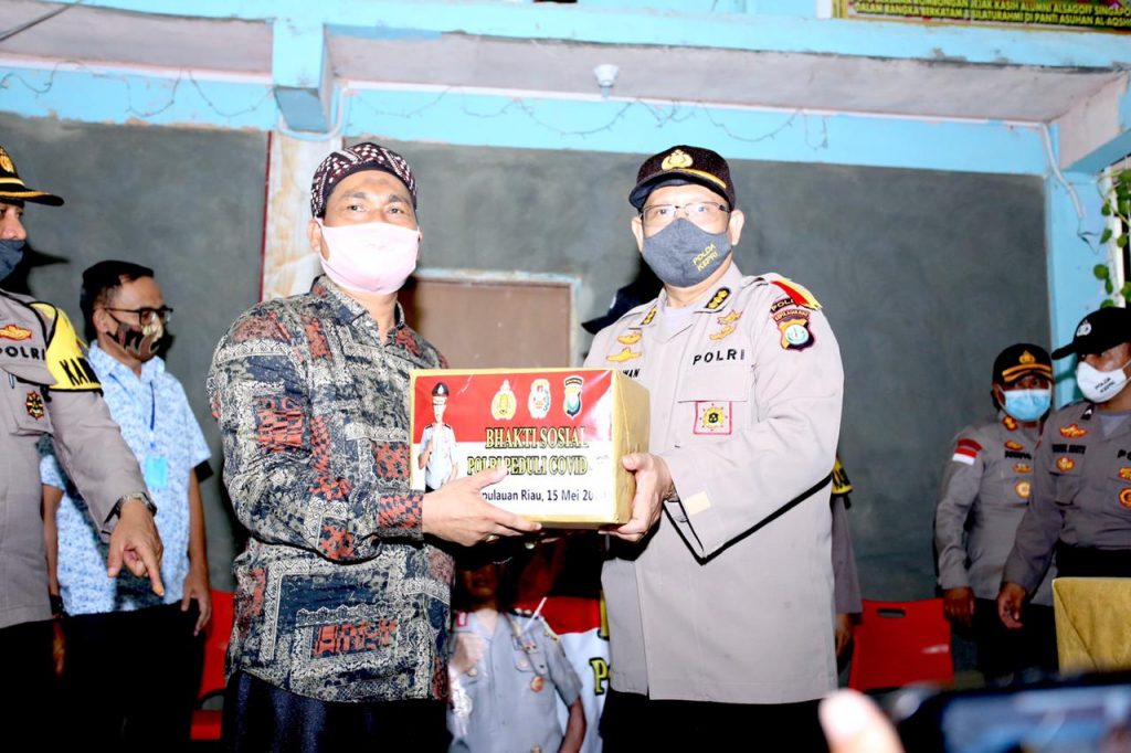 Kapolda Kepri saat berada Di Panti Asuhan El Saddai Abigail –Kecamatan Sei. Beduk mengatakan Bakti Sosial Polri Peduli Covid -19 ini secara serentak dilaksanakan di seluruh Indonesia termasuk juga di wilayah Polda Kepri dan Polres jajaran. “Kurang lebih 10.145 Paket Sembako yang akan kita bagikan kepada saudara-saudara kita hari ini, dan saya juga menghimbau kepada warga masyarakat yang kebetulan mempunyai rezeki lebih dapat juga membantu adik-adik kita yang berada di Panti Asuhan, dan diantara mereka kelak nantinya akan menjadi penerus dan masa depan depan bangsa kita, ” tutur Irjen Pol Dr. Aris Budiman M.Si.