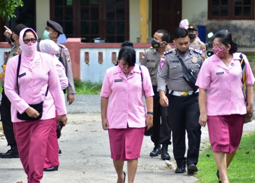 Wakil ketua Bhayangkari cabang Bintan Ny. Yuli Juleigtin S., Ketua Sosial Budaya Cabang Bhayangkari Bintan Ny. Ratini Sembiring dan pengurus serta anggota Bhayangkari Ranting Bintan Utara.