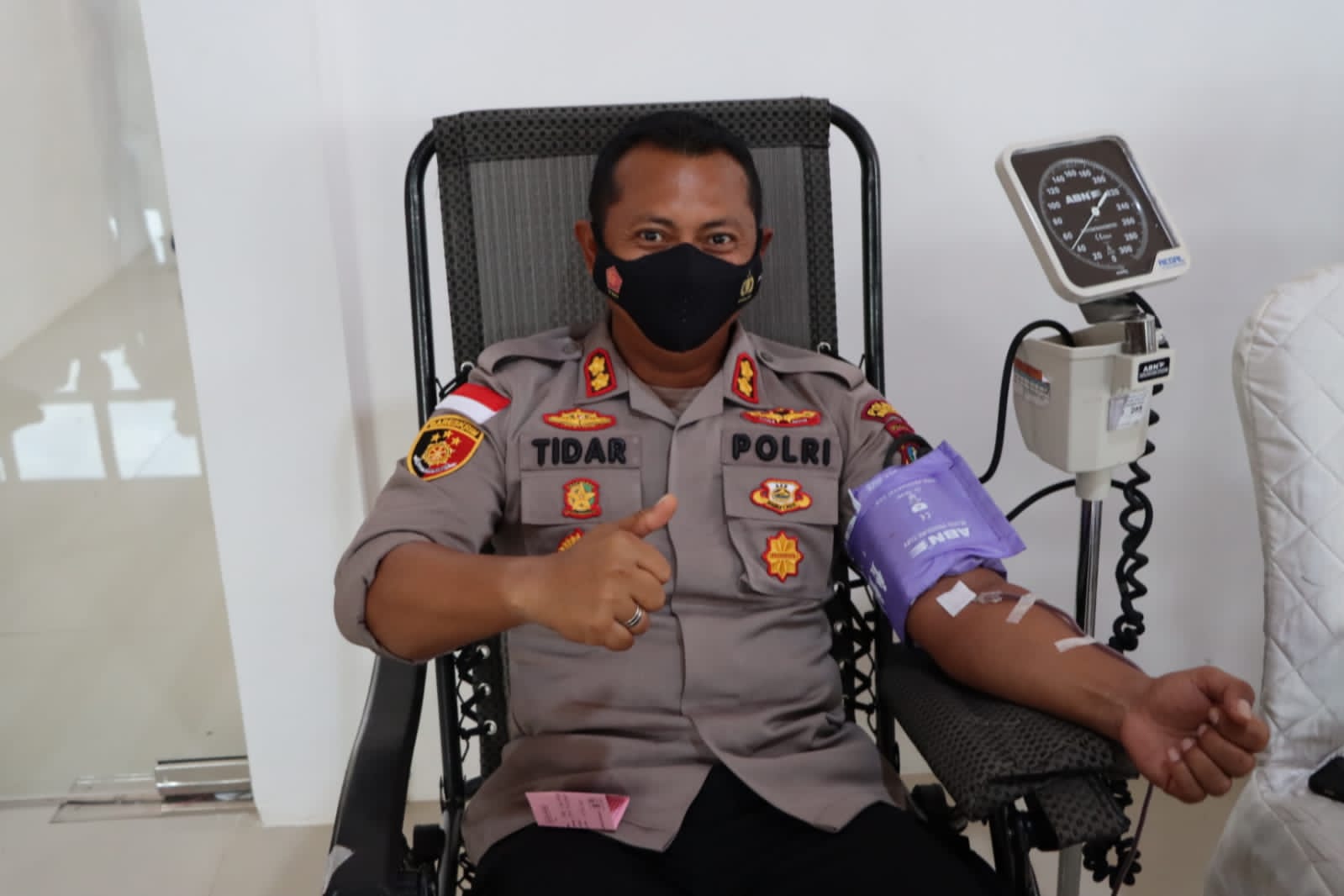 “Di hari ini dilaksanakan donor darah, terimakasih kepada Bhayangkari yang turut andil dalam kegiatan donor darah ini, semoga darah yang kita sumbangkan ini dapat berguna bagi orang yang membutuhkan. Jumlah pendonor sebanyak 180 orang dan ditambah oleh Bhayangkari sehingga seluruhnya sekitar 200 pendonor,” kata AKBP Tidar.