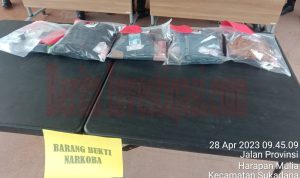 Kapolres didampingi Wakapolres dan Kasat Narkoba menunjukan barang bukti (foto: Dok BI)