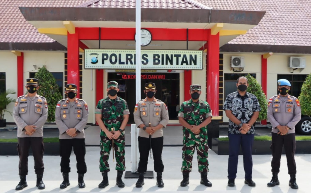 Kedatangan Dandim 0315/Tanjungpinang didampingi oleh Kapten D. Sihombing, Kasiter Kodim 0315/Tanjungpinang yang disambut langsung oleh Kapolres Bintan, AKBP Tidar Wulung Dahono, S.H, S.I.K, M.H yang didampingi oleh Wakapolres Bintan, Kompol M. Tahang, S.Ag beserta Pejabat Utama Polres Bintan.