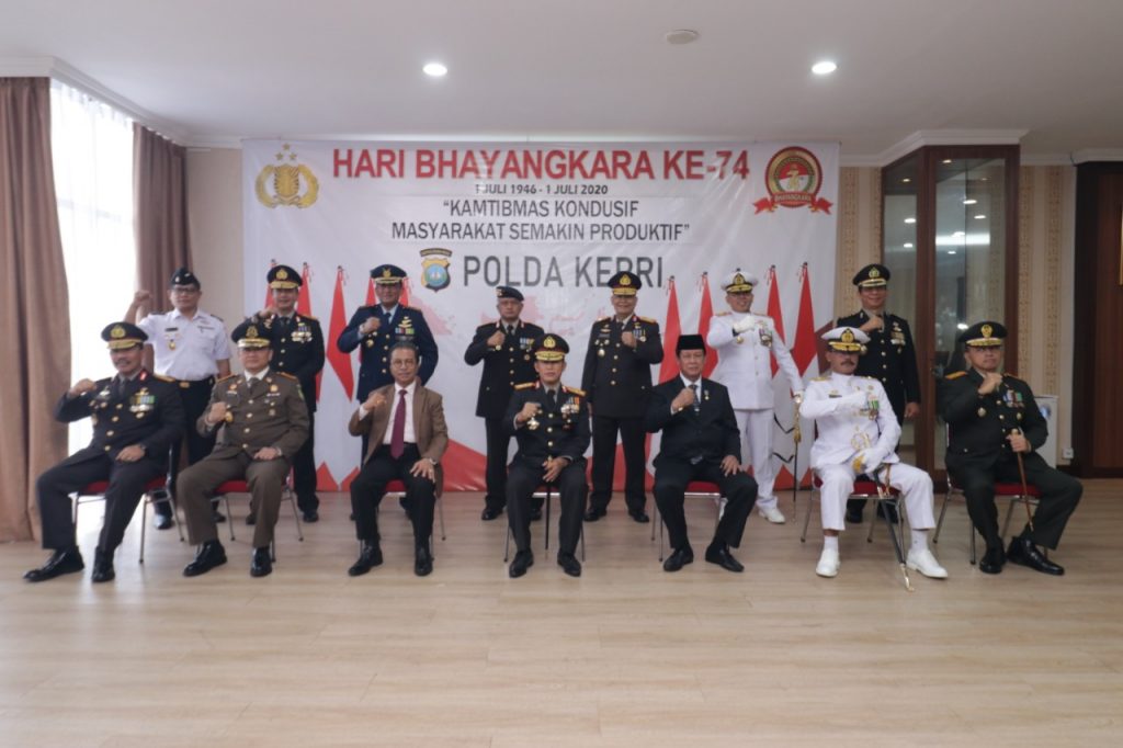 Setelah upacara dilanjutkan dengan acara ramah tamah syukuran HUT ke-74 Bhayangkara salah satu acaranya yaitupemotongan nasi tumpeng dan pemberian penghargaan kepada kepada personel Polda Kepri.