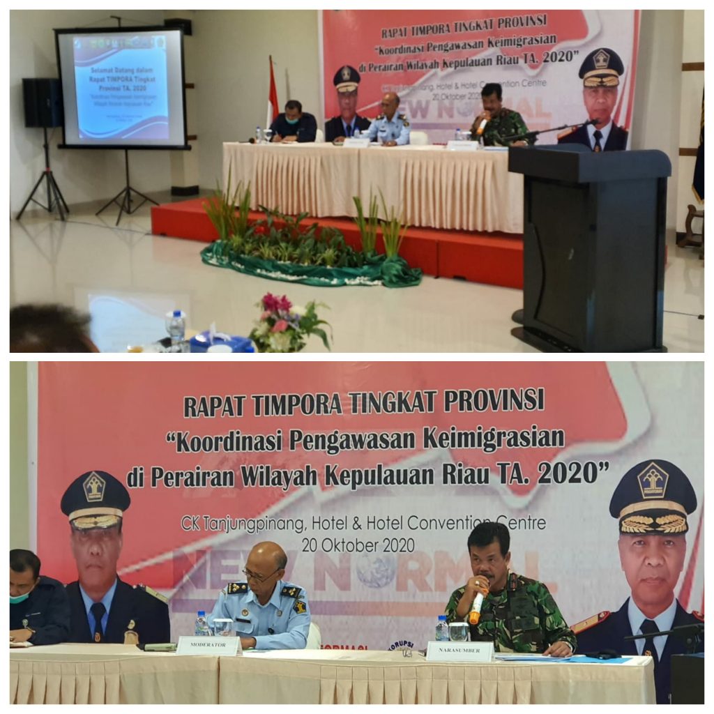 Tanjungpinang – BeritaInvestigasi.com. Komandan Pangkalan Utama TNI Angkatan Laut (Danlantamal) IV Tanjugpinang Laksamana Pertama TNI Indarto Budiarto, S.E., M.Han., bersama Asintel Danlantamal IV Kolonel Laut (P) Tommy Herlambang,S.E., hadiri undangan sebagai Narasumber pada acara Rapat Tim Pengawasan Orang Asing Provinsi Kepulauan Riau Tahun 2020 yang berlangsung di Convention Centre Hotel CK Tanjungpinang Jl.Raja Haji Fisabilillah Tanjungpinang Kepulauan Riau, Selasa pagi (20/10/2020).
