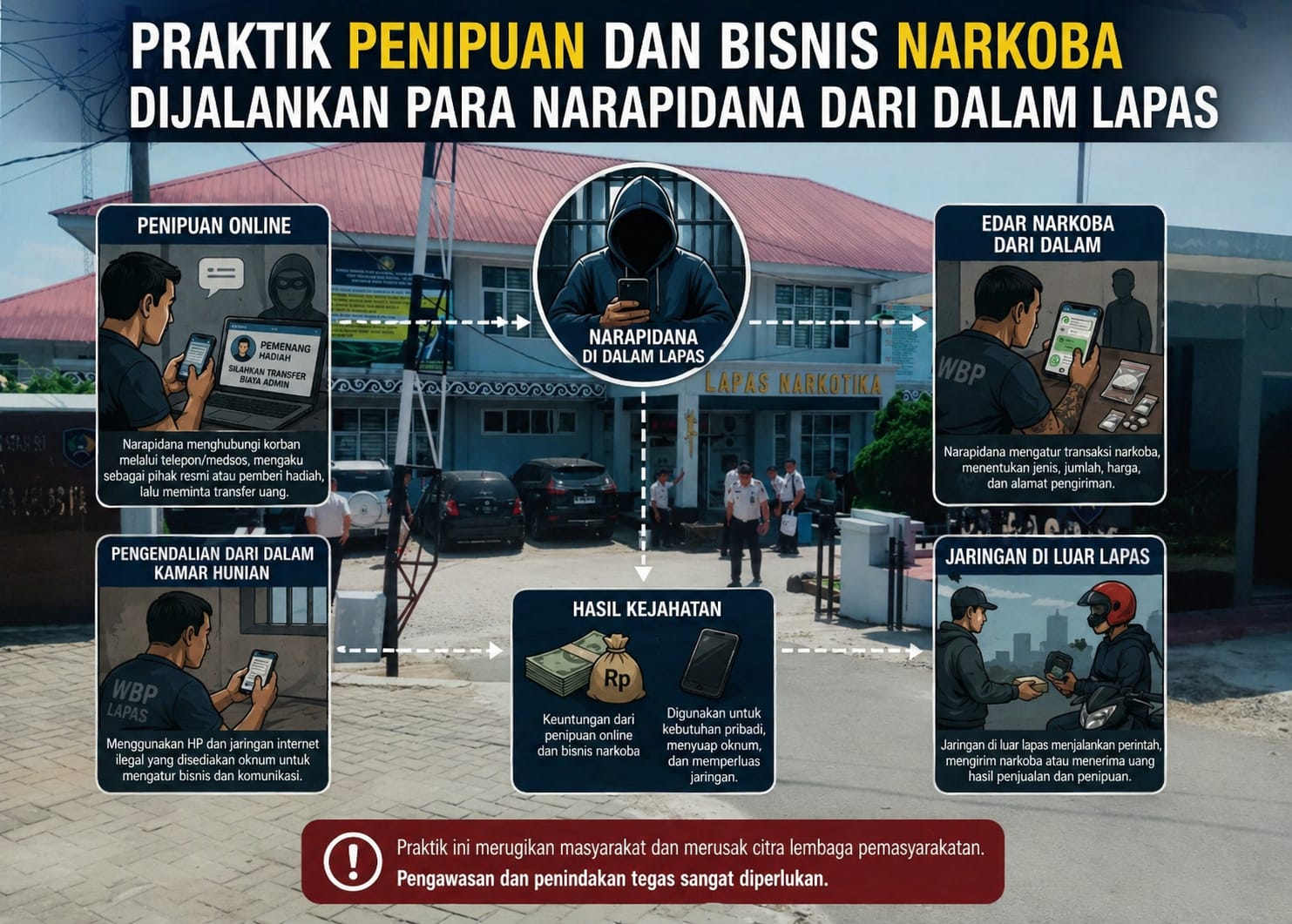 Untuk itu pihak terkait harus memberikan keterangan resmi kepada Masyarakat tentang seorang Bandar Sabu yang masih aktif sebagai napi di LP masih bisa bertransaksi dan bahkan menggunakan HP. Padahal PERATURAN MENTERI HUKUM DAN HAK ASASI MANUSIA REPUBLIK INDONESIA NOMOR 6 TAHUN 2013 TENTANG TATA TERTIB LEMBAGA PEMASYARAKATAN DAN RUMAH TAHANAN NEGARA DENGAN RAHMAT TUHAN YANG MAHA ESA MENTERI HUKUM DAN HAK ASASI MANUSIA REPUBLIK INDONESIA, BAB II Tentang Larangan untuk Napi Pasal 4 ayat (g). menyimpan, membuat, membawa, mengedarkan, dan/atau mengkonsumsi narkotika dan/atau prekursor narkotika serta obat-obatan lain yang berbahaya; dan ayat (j). memiliki, membawa dan/atau menggunakan alat elektronik, seperti laptop atau komputer, kamera, alat perekam, telepon genggam, pager, dan sejenisnya;
