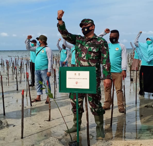 “Tentunya kami sangat mengapresiasi terutama hal ini untuk menjaga dan melestarikan ekosistem laut dengan mangrove cegah erosi dan abrasi,” ujar Dandim 0315/Bintan.