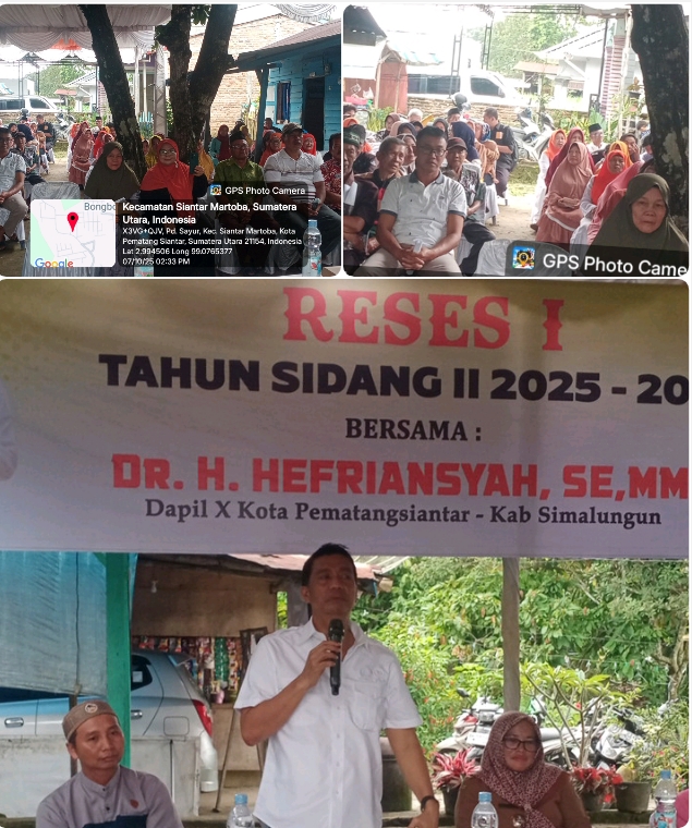 Pematangsiantar, Sumatera Utara- Beritainvestigasi.com H.Hefriansyah, SE, MM Anggota DPRD Daerah Provinsi Sumatera Utara melaksanakan kegiatan Reses I Tahun 2025/ 2026 yang berlangsung di Desa Bukit Maratur, Kelurahan Pondok Sayur, Kecamatan Siantar Martoba. Selasa, 7/10/2025