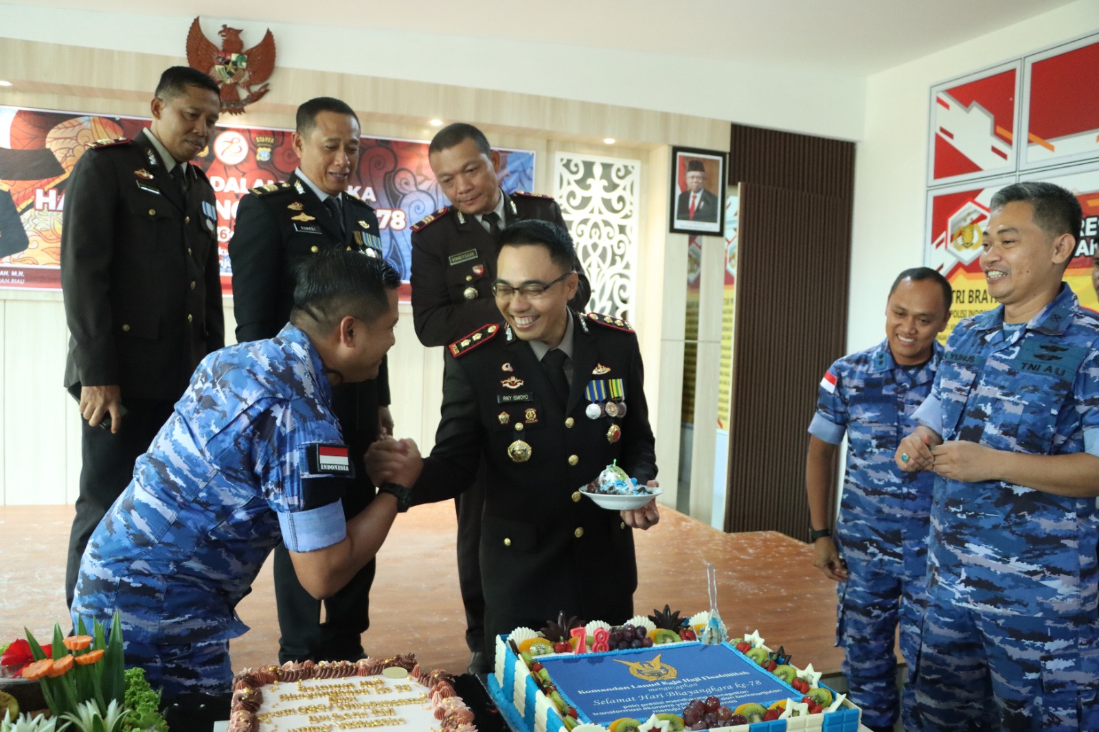 Dandim 0315 Tanjungpinang Kolonel Inf. Ganta Eka Chandra, Danlanud RHF yang diwakili oleh Letkol Kal Suhartanto mengatakan bahwa kedatangannya ke Polres sengaja untuk memberikan ucapan Selamat hari Bhayangkara ke-78 kepada Kapolres Bintan dan anggotanya.