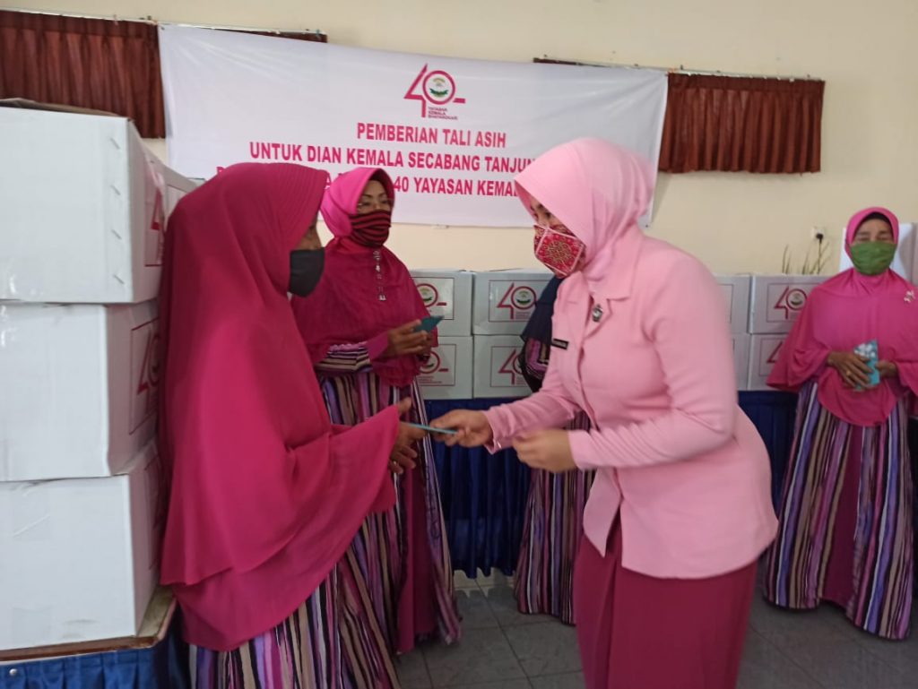 Ny. Karina Iqbal pada pelaksanaan kegiatan menyampaikan bahwa pemberian tali asih ini bentuk kepedulian Bhayangkari di tengah pandemi Covid-19 yang saat ini kita alami yang mana dampaknya yang cukup dirasakan oleh warga. Dian Kemala dan Warakawuri juga perlu mendapat perhatian dari kita karena sedikit banyak telah berkontribusi terhadap institusi Polri baik pribadinya maupun suaminya sebagai anggota Polri yang telah mengabdi. Majelis guru dan karyawan TK Kemala Bhayangkari patut diapresiasi karena jasanya sebagai tenaga pendidik bagi putra putri kita. Dalam rangka HUT ke 40 YKB ini semoga Bhayangkari dapat berbuat lebih baik lagi baik dalam dukungannya kepada institusi Polri juga bagi masyarakat.