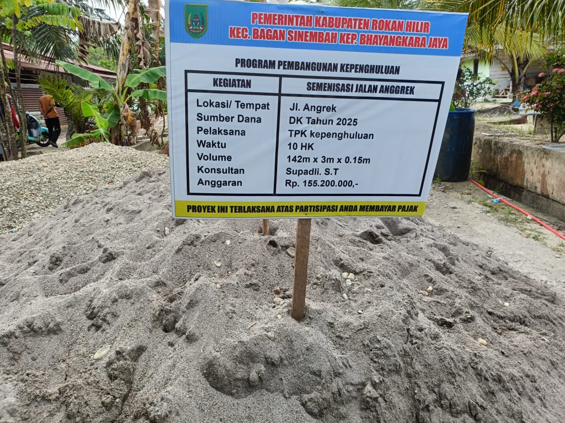 Rohil, Riau – Beritainvestigasi.com. Pembangunan Semenisasi Jalan Angrek RT02, RW02, Kepenghuluan Bhayangkara Jaya (Blok A), Kecamatan Bagan Sinembah, Kabupaten Rokan Hilir, Provinsi Riau yang bersumber dari Dana Kepenghuluan (DK) Tahun 2025, diduga dikerjakan asal jadi dan tidak sesuai spesifikasi karena volume ketebalan, lebar, tidak sesuai. Serta penggunaan terpal plastik dan besi warmes di bagian tengah semenisasi tidak dipasang. Sabtu (19/07/2025).