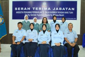 Jabatan Anggota Pengawas Perwakilan Tanjung Balai Karimun/TBK Yayasan Hang Tuah diserah terimakan dari Ny. Karindia kepada Ny. Whiesse dalam suasana keakraban tertib dan tentunya aman.