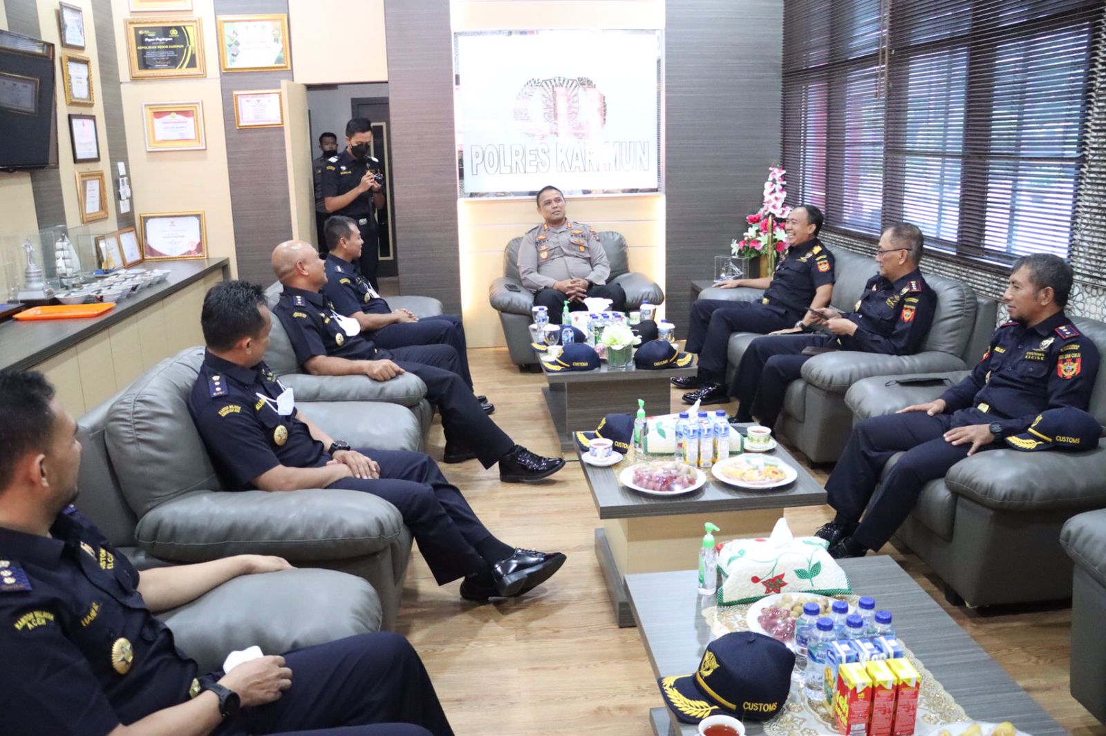 Kehadiran Kakanwil BC Kepri ke Polres Karimun tersebut disambut baik oleh Kapolres Karimun, AKBP Tony Pantano, S.I.K, S.H bersama Kasat Reskrim, AKP Arsyad Riyandi, S.I.P, M.H dan Kasat Polairud, AKP Binsar Samosir, S.H, M.H di ruangan Lounge Sarja Arya Racana.