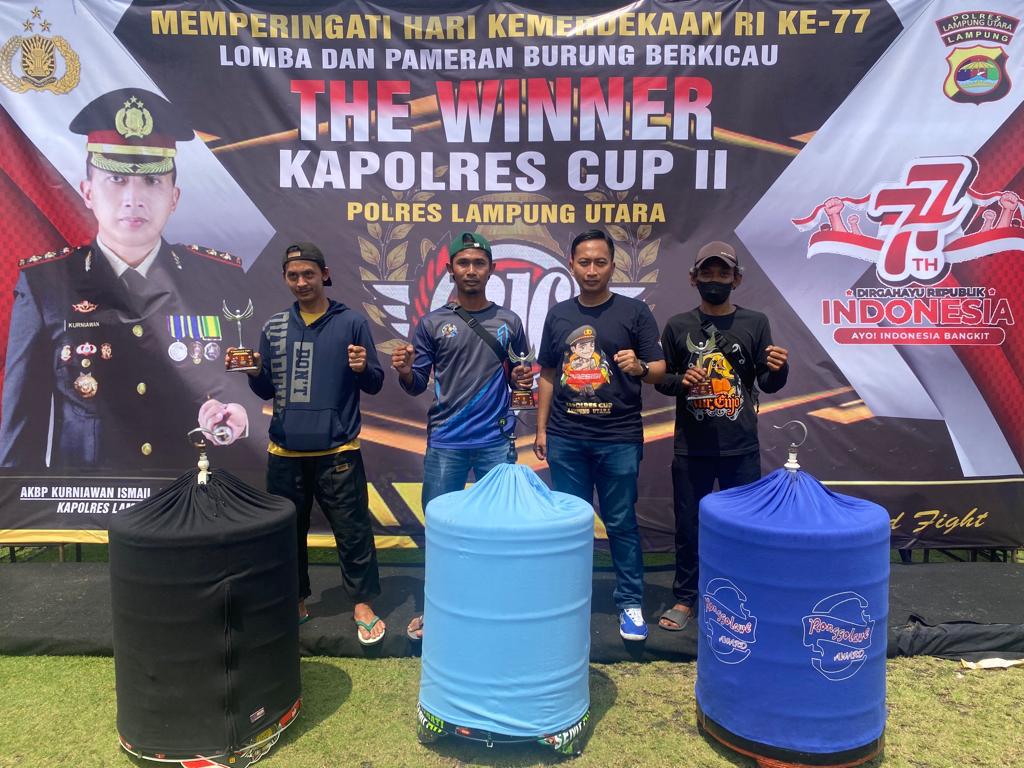Adapun perlombaan yang memperebutkan Piala Kapolres Cup ini, diikuti beragam jenis burung, diantaranya jenis Lovebird, Murai Batu, Kenari, dan Kacer