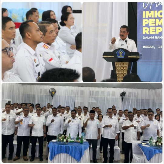 Dalam uraiannya Agus Andrianto selaku Menteri IMIPAS menyampaikan terima kasih seluruh Ka. UPT Imigrasi dan Pemasyarakatan di wilayah Kemenkumham Sumatera Utara yang selama ini telah bekerja dengan baik. Setelah diperbarui nomenklatur Kemenkumham menjadi 3 ( tiga ) kementerian, saya yakin dan percaya bahwa rekan – rekan sobat Pengayoman mampu untuk dapat melaksanakan Asta Cita Presiden dan Wakil Presiden serta 13 Program Akselerasi. Kementerian IMIPAS sendiri juga telah memberikan 20.000 paket Bantuan Sosial yang telah diterima oleh masyarakat kurang mampu disekitar Lapas/Rutan. Terus laksanakan giat Razia / Penggeledahan Rutin dan Insidentil dengan berlandaskan 3 ( tiga ) kunci Pemasyarakatan Maju dan Back to Basic. Dengan hal tersebut tentu, apa yang menjadi cita-cita leluhur kita pada Indonesia ( umumnya ) dan Pemasyarakatan ( khususnya ) akan dapat segera kita wujudkan. Ujar Agus Andrianto .