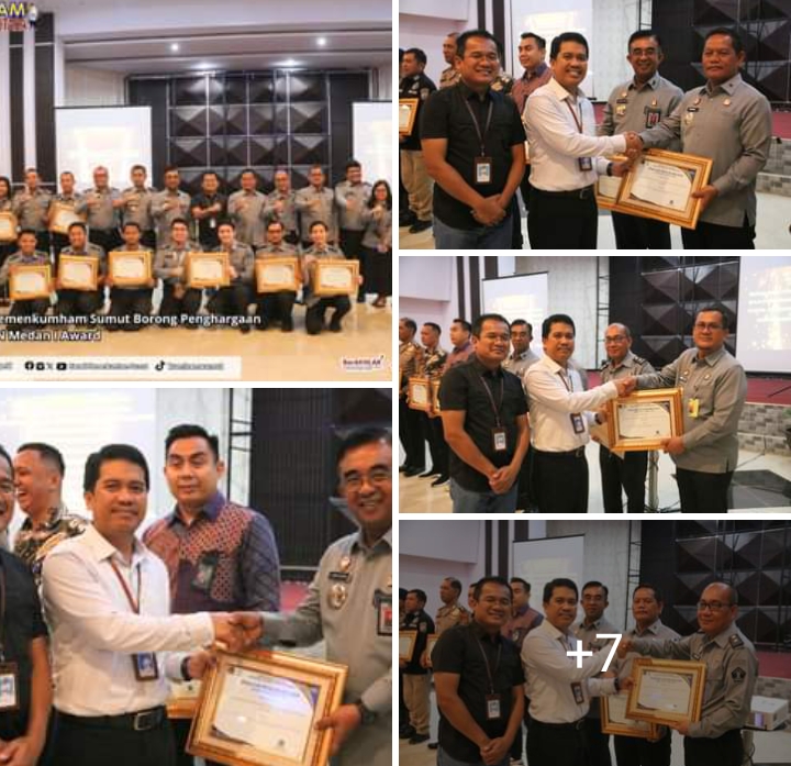 Satuan Kerja di lingkungan Kanwil Kemenkumham Sumut juga menerima penghargaan dari KPPN Medan 1 yaitu Kantor Imigrasi Kelas 1 Khusus TPI Medan, Lembaga Pembinaan Khusus Anak Kelas 1 Medan dan Rumah Tahanan Negara Kelas 2B Tanjung Pura. (Kanwil KUMHAM Sumut/ Red)
