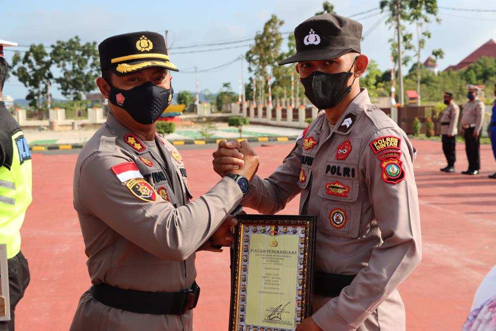 Upacara pemberian penghargaan tersebut dihadiri oleh Wakapolres Bintan KOMPOL M. Tahang, S.Ag., para Pejabat Utama Polres Bintan dan personil Polres Bintan.