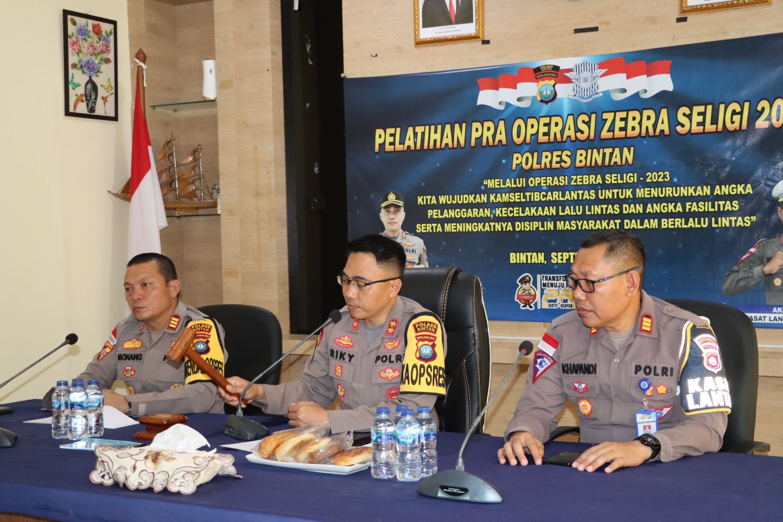 Kapolres Bintan AKBP Riky Iswoyo, S.I.K., M.M. menyampaikan kepada personil yang terlibat dalam operasi Zebra Seligi 2023 agar melaksanakan tugas dan fungsinya sesuai dengan struktur operasi.