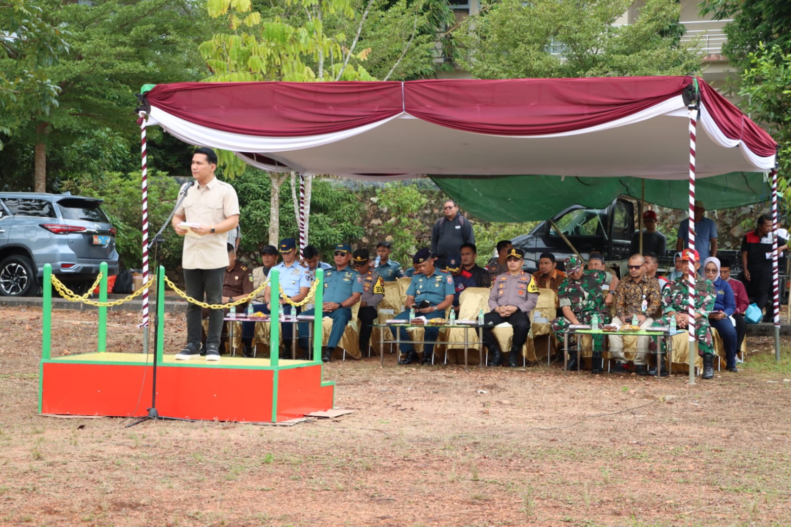 Pembina Upacara Pembukaan Pelatihan Outbond tersebut dipimpin oleh Ahdi Muqsith selaku PLT. Bupati Bintan dan dihadiri oleh Kapolres Bintan AKBP Riky Iswoyo, S.I.K., M.H., Kepala Kesbangpol Bintan, Danlanal Bintan, Fasharkan Mentigi, Dansatrad 213/Bintan, KAPTEN Sutarno yang mewakili Danlanud RHF Tanjungpinang, Kasubsi Intel Kejaksaan Bintan,