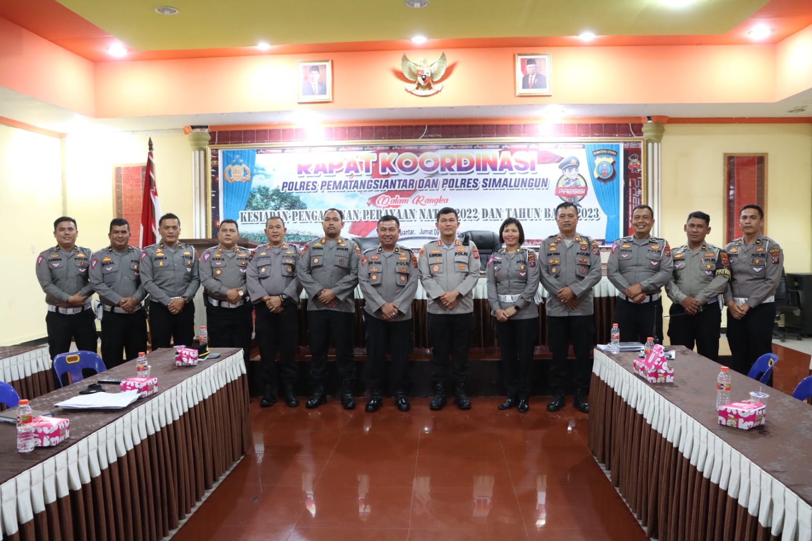 Simalungun, Sumut- Beritainvestigasi.com Guna menyamakan persepsi, pola tindak, serta menentukan cara bertindak Kapolres Simalungun pimpin Rapat Koordinasi Polres Simalaungun bersama Polres Pematangsiantar dalam rangka Kesiapan Pengamanan Perayaan Natal 2022 dan Tahun Baru 2023, yang digelar di Aula Widya Satya Brata Mako Polres Pematangsiantar, Jln.Sudirman Kecamatan Siantar Barat Kota Pematangsiantar, Sabtu (10/12/2022) sekira Pkl.10.00 WIB.