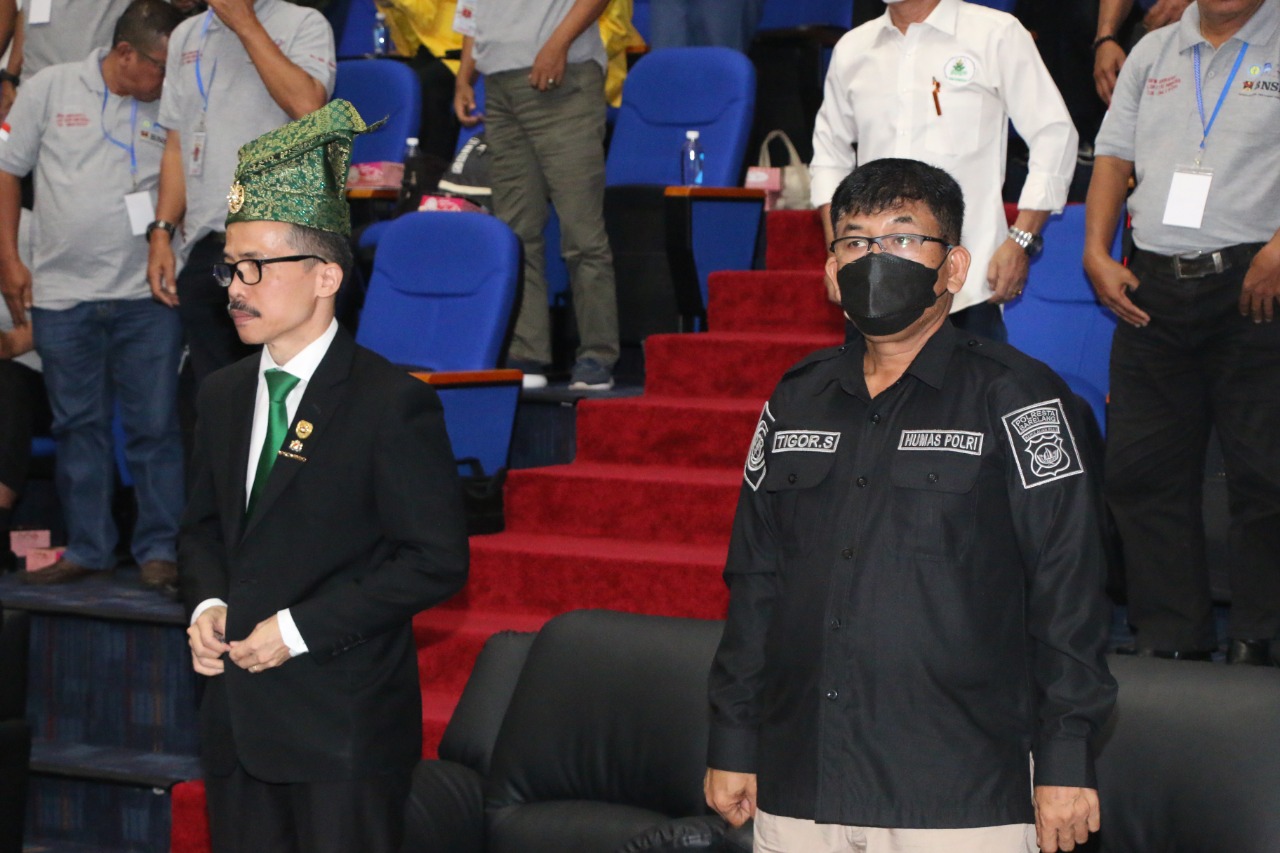 Dalam kegiatan ini dilaksanakan Pemberian Tanjak dan Seragam dari LSP Pers Indonesia kepada Rektor Uniba serta Para Undangan. (Wes/Hms/Red).