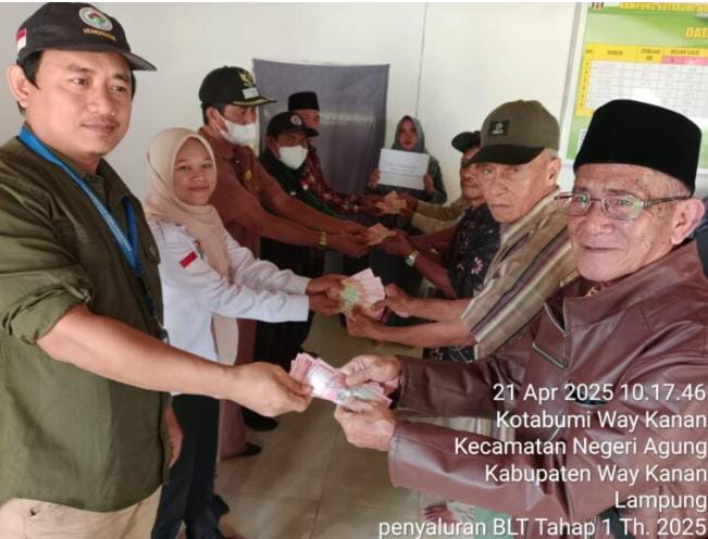 Way Kanan, Lampung -Beritainvestigasi.com Kepala Kampung Kotabumi Way Kanan, Kecamatan Negeri Agung salurkan BLT-DD tahap sebanyak 25 KPM dengan jumlah Rp 900 000 Pertriwulan di Kantor Kampung Kotabumi Way Kanan, Senin 21/04/2025