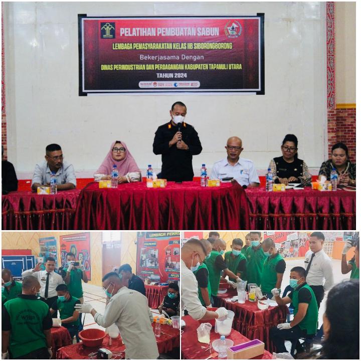 Untuk itu, Lapas Siborongborong berkolaborasi dengan Dinas Koperasi Perindustrian Perdagangan dan Usaha Kecil Menengah (Koperindag dan UKM) Kabupaten Tapanuli Utara (Taput) memberikan pelatihan kepada warga binaan tentang cara pembuatan sabun mandi.