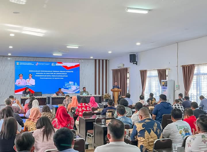 Pematangsiantar, Sumatera Utara- Beritainvestigasi.com Wali Kota Pematangsiantar Wesly Silalahi SH MKn diwakili Kepala Inspektorat Herri Okstarizal SH MH CCGAE CGRE bersama Kejaksaan Negeri (Kejari) Pematangsiantar menggelar Sosialisasi Pencegahan Tindak Pidana Korupsi (Tipikor) kepada pengguna anggaran (PA), kuasa pengguna anggaran (KPA), dan pejabat pembuat komitmen (PPK). Kegiatan berlangsung di Aula Kantor Inspektorat Pematangsiantar, Jalan Siatas Barita Kelurahan Tomuan Kecamatan Siantar Timur, Jumat (22/08/2025).