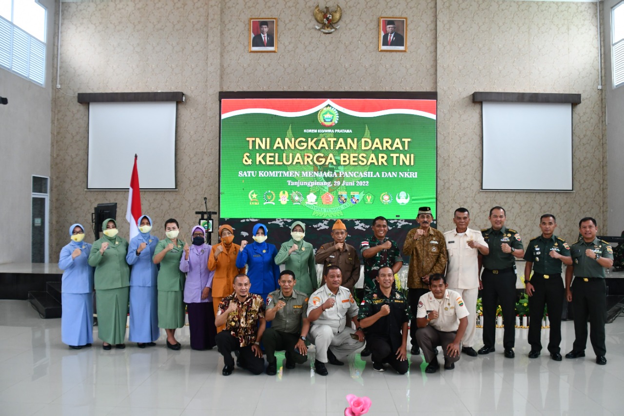 Tanjungpinang, Kepri – Beritainvestigasi.com. Guna mewujudkan keeratan hubungan dalam rangka kepentingan pertahanan negara, Korem 033/WP menggelar Komunikasi bersama Keluarga Besar TNI (KBT), bertemakan “TNI AD dan Keluarga Besar TNI Satu Komitmen Menjaga Pancasila dan NKRI”, satukan tekad memperkokoh persatuan dan cinta tanah air.