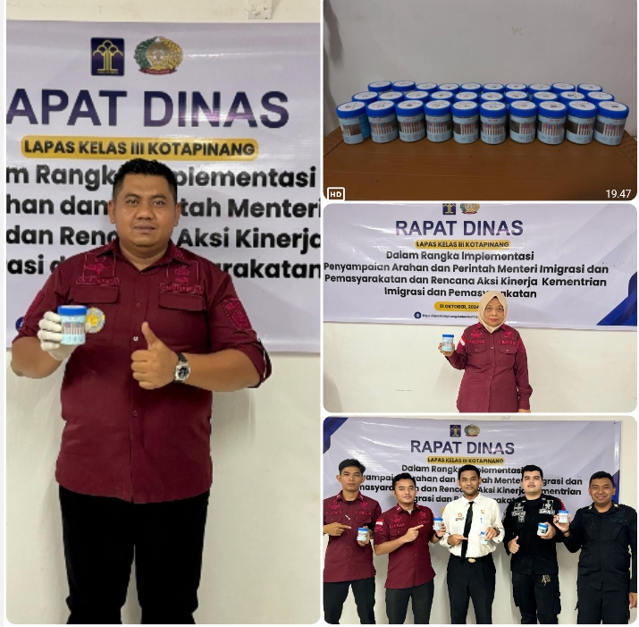 Tes urine ini merupakan salah satu komitmen Lapas Kotapinang dalam memerangi narkoba sekaligus implementasi yang merujuk pada Perintah Harian dan 13 Poin Akselerasi Mentri Imigrasi dan Pemasyarakatan untuk menyukseskan program 100 hari kerja Presiden Prabowo/Gibran.