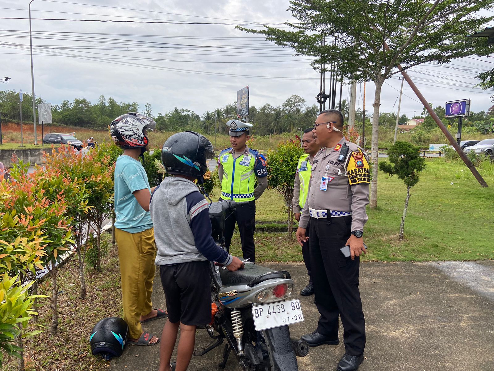 Kasi Humas menerangkan bahwa peneguran tersebut dilakukan karena pengendara tidak mematuhi peraturan lalu lintas seperti tidak memiliki Surat Izin Mengemudi (SIM), tidak menggunakan Helm, berboncengan lebih dari satu orang, tidak melengkapi kelengkapan kendaraan seperti Spion, lampu yang mati dan kelengkapan Sepeda Motor lainnya, terangnya.