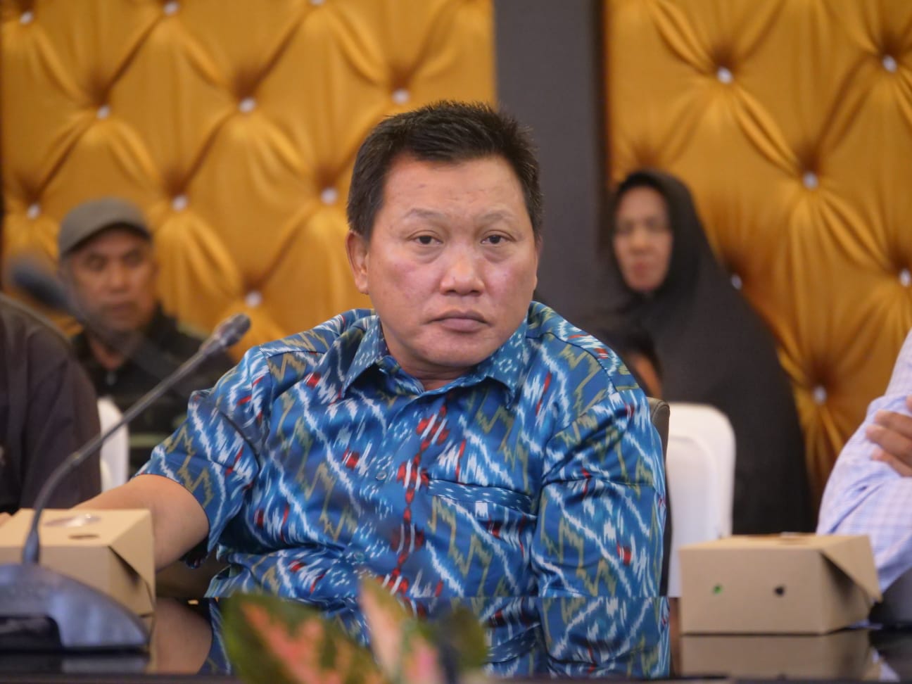 Ket : Anggota DPRD Kabupaten Bintan Tarmizi saat hadir diruang rapat 2 kantor bupati Bintan bersama para nelayan dan organisasi nelayan.