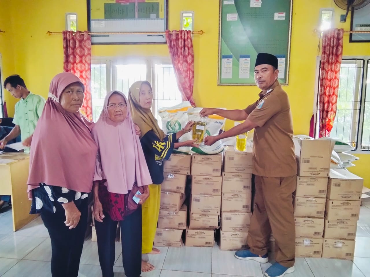 Pemerintah Kampung Bengkulu Tengah salurkan Bantuan Sembako Beras CPP dan minyak Goreng Kepada 141 KPM