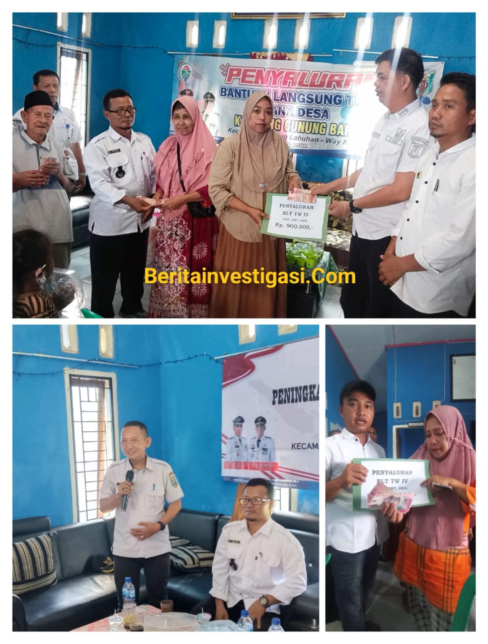Way Kanan, Lampung, -Beritainvestigasi.Com Pemerintah Kampung Gunung Baru Kecamatan Gunung Labuhan Kabupaten Way Kanan bagikan BLT DD dan Insentif Aparatur Kampung di tahap ke 4 di Kantor Kampung Gunung Baru Rabu 25/09/2024.
