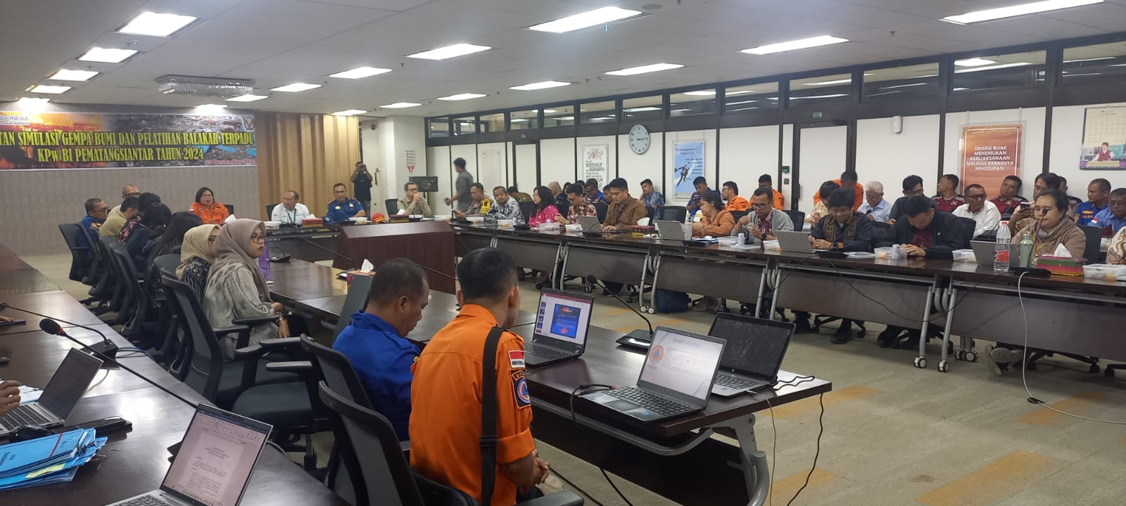 Kepala Perwakilan Bank Indonesia Pematangsiantar Muqorobin saat membuka acara menyampaikan pengalaman ketika terjadi gempa sehingga termotivasi untuk melaksanakan sosialisasi dan simulasi.