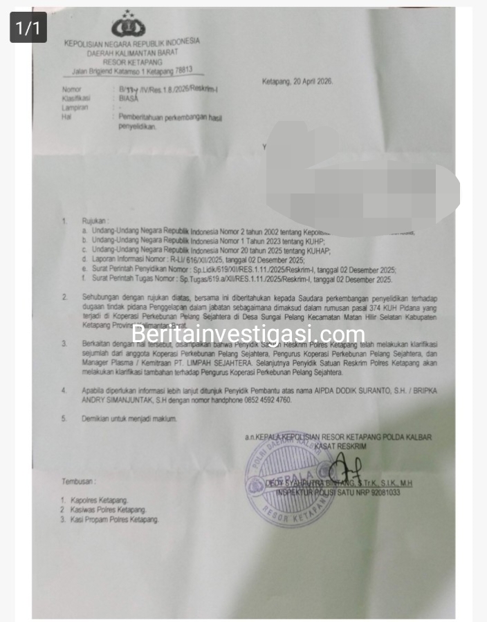 Surat resmi dari Polres Ketapang tertanggal 20 April 2026 memang menyatakan bahwa perkara masih dalam tahap pendalaman. Namun bagi banyak pihak, penjelasan tersebut dinilai tidak cukup menjawab tuntutan kepastian hukum, terlebih mengingat besarnya skala dugaan pelanggaran yang melibatkan ratusan hingga ribuan anggota koperasi.