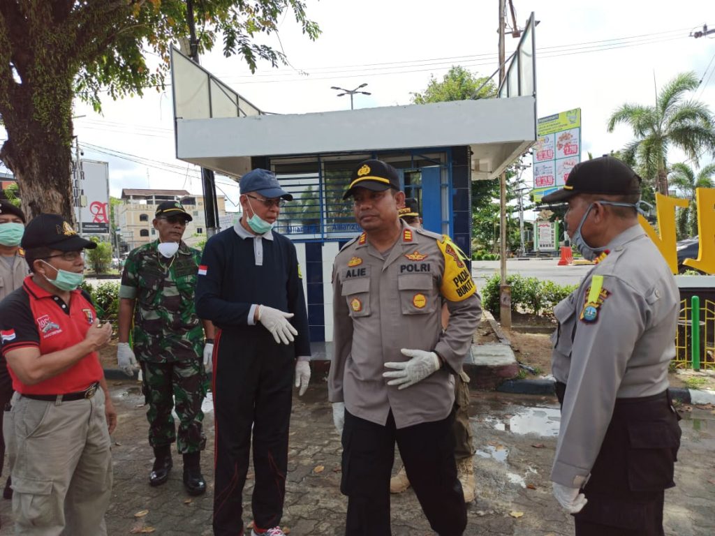 Tanjungpinang – Beritainvestigasi.com. Pemerintah Kota Tanjungpinang bersama Polres Tanjungpinang dan TNI, Satpol PP serta Damkar kembali melakukan penyemprotan cairan Disinfektan, Sabtu (28/3/2020).