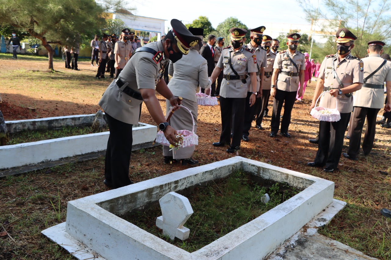 Ziarah dan tabur bunga tersebut digelar dalam rangka memperingati hari Bhayangkara ke-76.