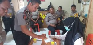 Sebanyak 14 personil Polsek Tambelan sekitar 11 orang lakukan pemeriksaan urine.