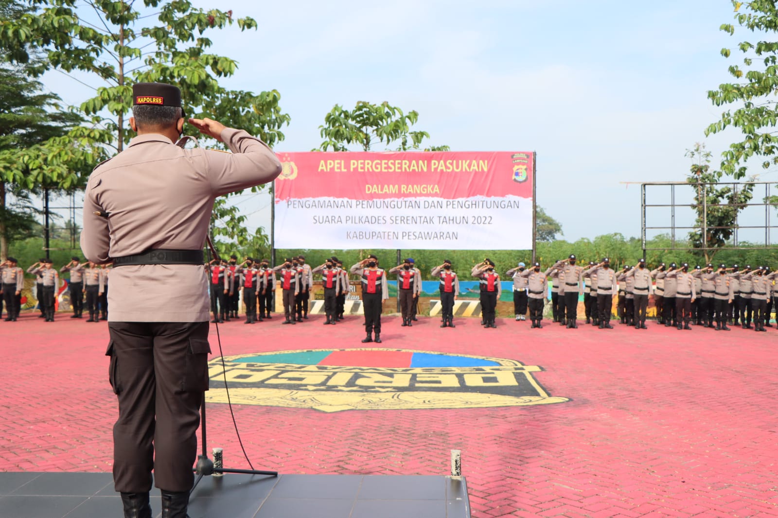 Hal tersebut dikemukakan Kapolres Pesawaran, AKBP Pratomo Widodo, S.I.K, M.Si (Han) pada Apel Gelar Pasukan dalam rangka Pergeseran Pasukan Pengamanan Pilkades serentak Kabupaten Pesawaran Tahun 2022 di Halaman Mapolres Pesawaran Polda Lampung, Jum’at (16/12/2022) pukul 08.00 WIB.