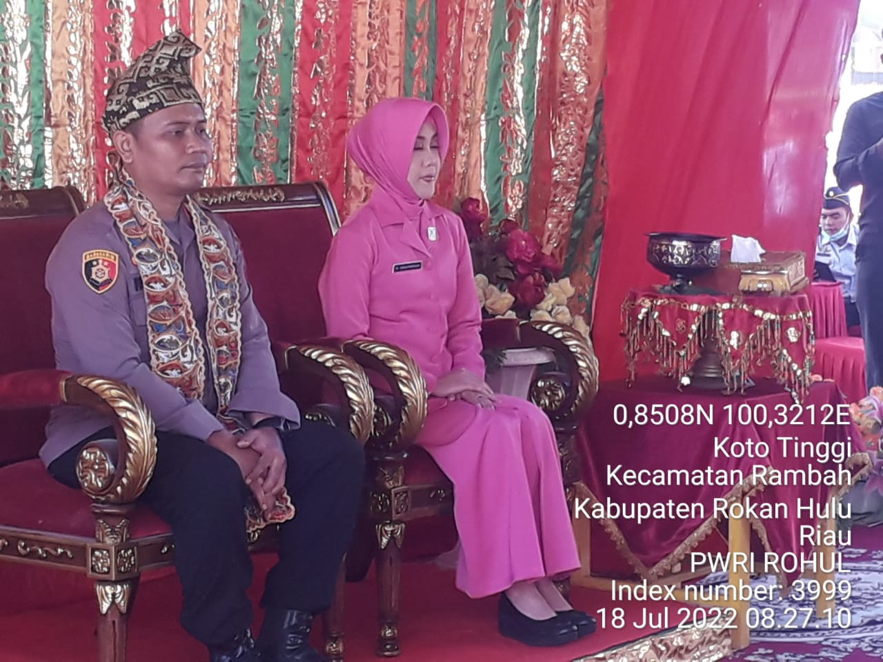 Pada kesempatan itu, keduanya menyaksikan tari persembahan atau Setapak Sirih, kemudian, Kapolres Baru dipasang Tanjak menerima acara Adat Melayu Tepung Tawar dari Ketua LAM Rohul, H Zulyadaini didampingi Dr. Difendri.