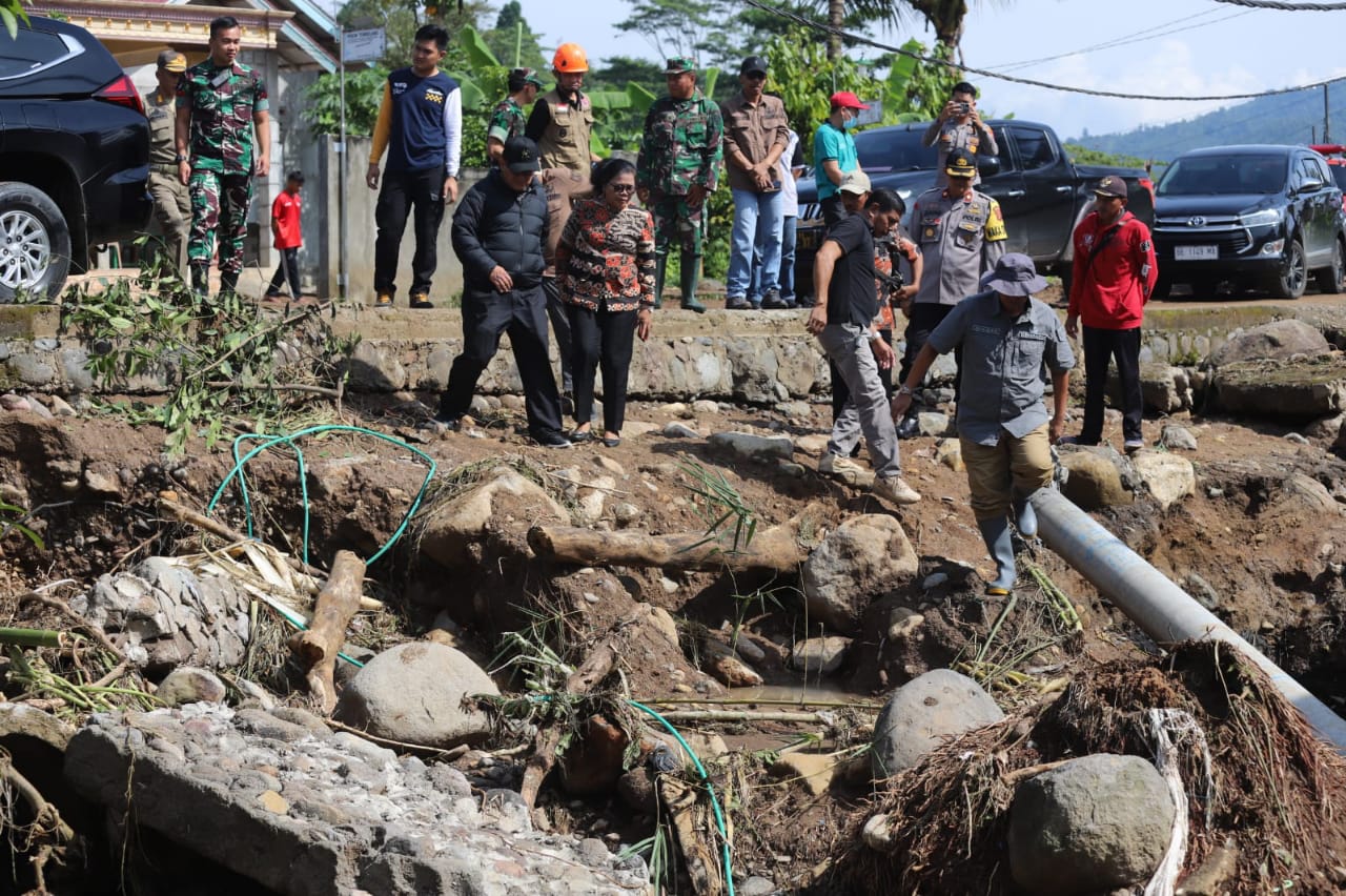 Saat berbincang dengan warga, Pj Bupati menyampaikan rasa keprihatinan atas musibah banjir yang dialami warga Bandar Negeri Suoh.