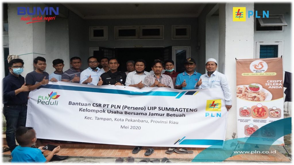 Kali ini PLN menyalurkan bantuan yang diserahkan kepada kelompok UMKM di Pekanbaru. Bantuan berupa uang tunai sebesar Rp. 75.000.000,- diserahkan langsung oleh Manajer PT. PLN (Persero) Unit Pelaksana Proyek dan Jaringan (UPPJ) Riau-Kepri Eriza Mulhadi kepada Kelompok Usaha Bersama (KUBE) Jamur Crispy Bertuah di Kelurahan Air Putih, Kecamatan Tampan, Selasa (23/06).