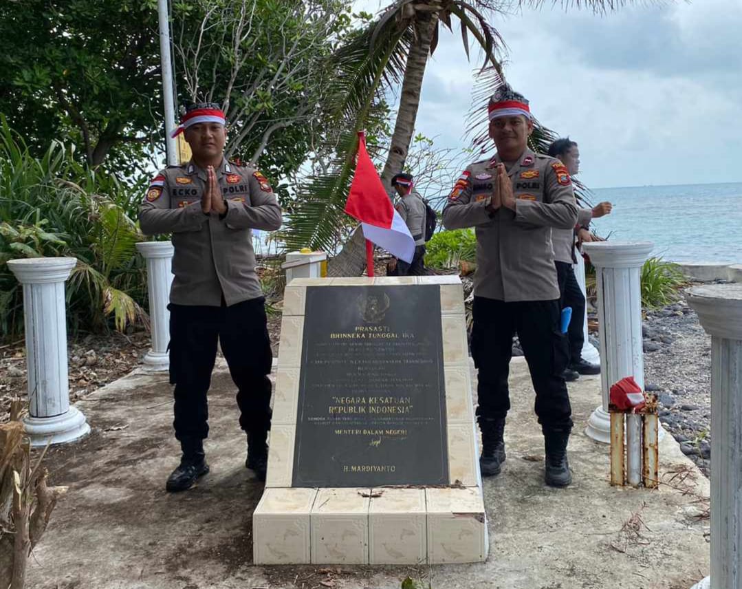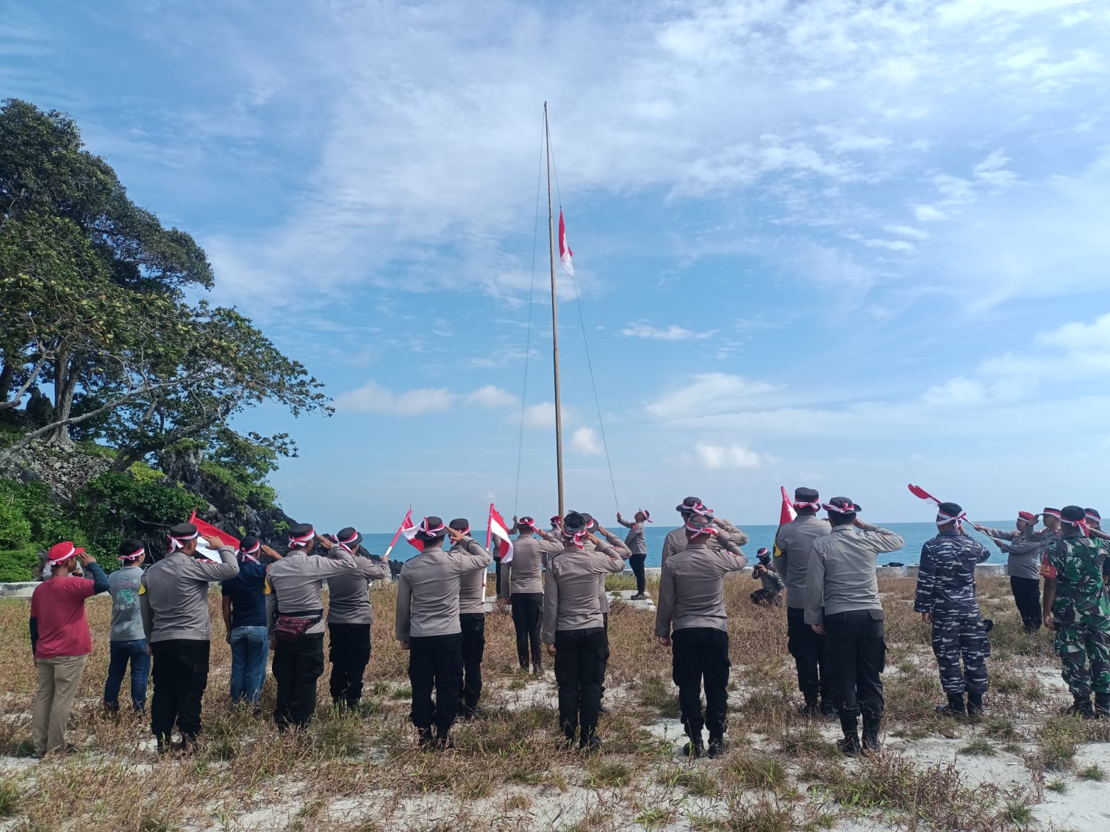 Polisi Kibarkan Bendara Merah Putih di Pulau Terluar Wilayah Kabupaten Bintan.