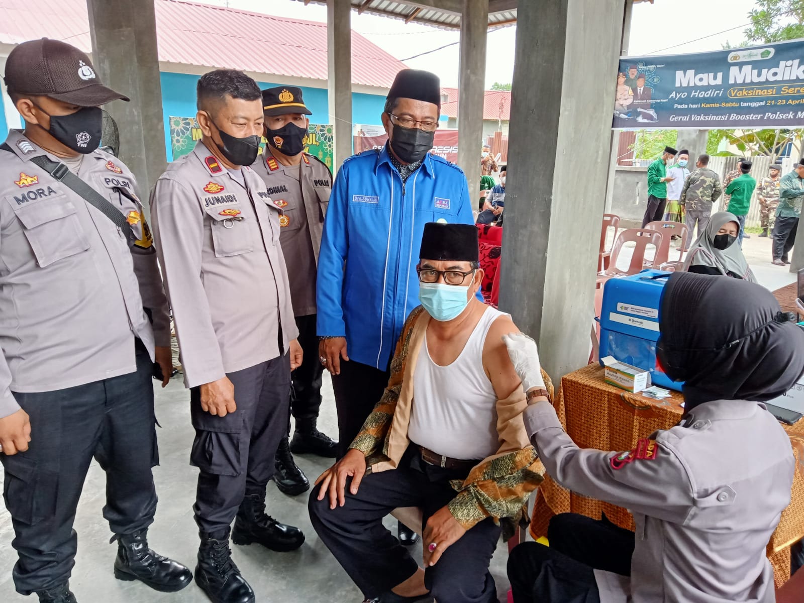 “Adapun syarat bagi peserta untuk mengikuti vaksinasi booster yakni telah mendapatkan dua kali vaksinasi Covid-19 dan diutamakan bagi Lansia, namun demikian, masyarakat yang belum pernah vaksin juga dapat memperoleh vaksin dosis pertama ataupun kedua,” jelas Kapolres.
