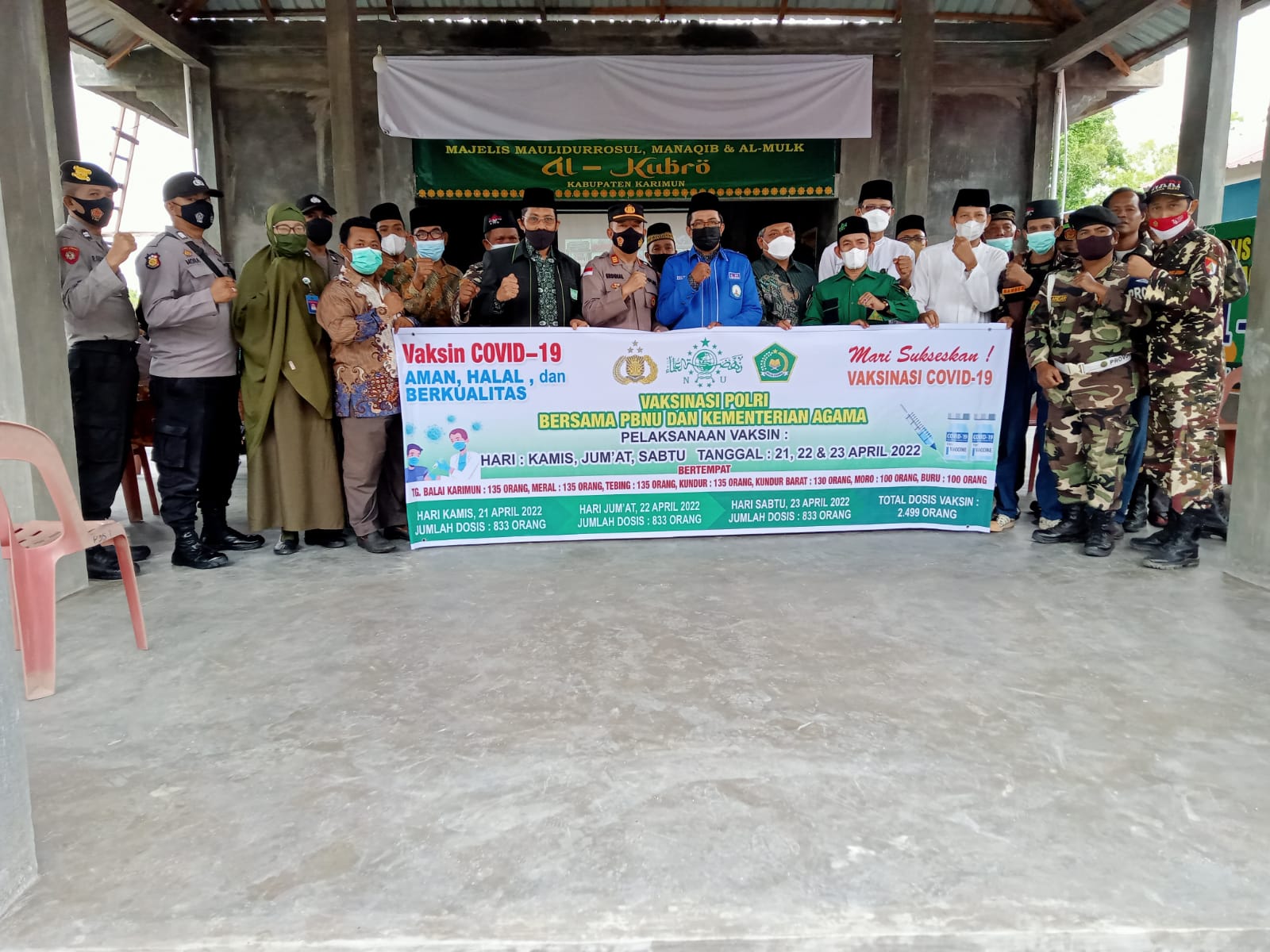 Karimun, Kepri – Beritainvestigasi.com. Polres Karimun bersama Pegurus Nahdlatul Ulama dan Kementerian Agama Kabupaten Karimun menggelar program satu juta vaksin booster dari tanggal 21-23 April 2022. Vaksinasi serentak ini merupakan program kerjasama PBNU pusat, Polri dan Kementrian Agama RI. Kamis (21/04/2022).