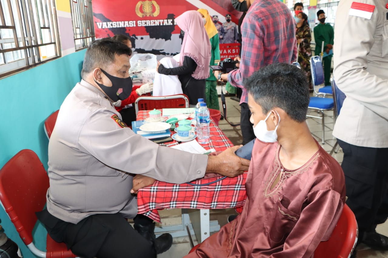 Sebagai bentuk sinergi percepatan vaksinasi Covid-19 bagi anak usia 6-11 tahun, Polres Karimun menyediakan sebanyak 100 dosis vaksin dan terealisasi 111 dosis yg terdiri dari 106 orang anak, 2 orang remaja, 2 orang dewasa dan 1 orang Lansia.