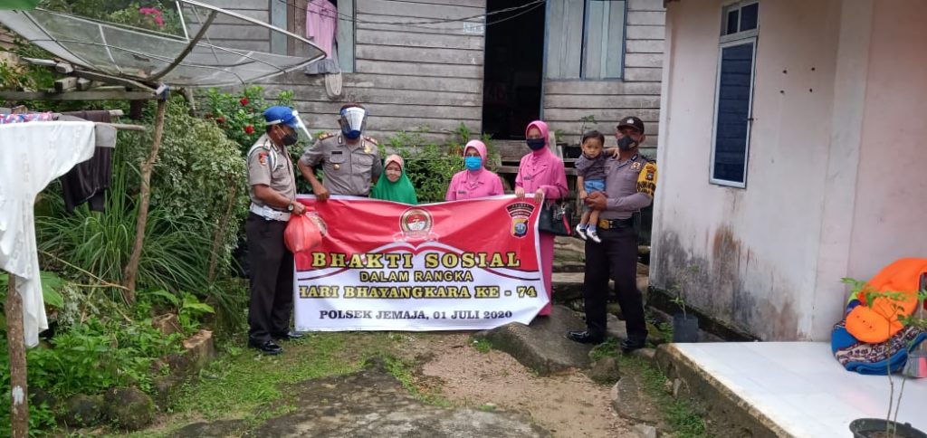 baik. Tema Peringatan Hari Bhayangkara ke-74 tahun 2020 ini yaitu ”Kamtibmas Kondusif, Masyarakat Semakin Produktif”, sangat tepat dimaknai bahwa Polri sebagai alat negara yang bertugas memelihara Kamtibmas harus senantiasa hadir untuk masyarakat, terlebih dalam masa sekarang ini. Bakti sosial serentak yang kita laksanakan ini adalah salah satu wujud nyata kepedulian Polri terhadap masyarakat yang terdampak langsung dari pandemi Covid-19.