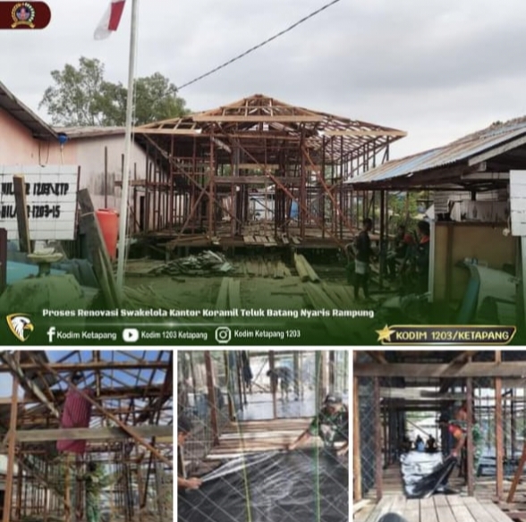 Kayong Utara, Kalbar- Beritainvestigasi.com Kantor Koramil 1203-15/Teluk Batang, yang terletak di Kecamatan Teluk Batang, Kab. Kayong Utara saat ini menjalani proses renovasi yang dilaksanakan melalui swakelola di Wilayah Kodim 1203/Ktp, Kamis (14/3/2024)